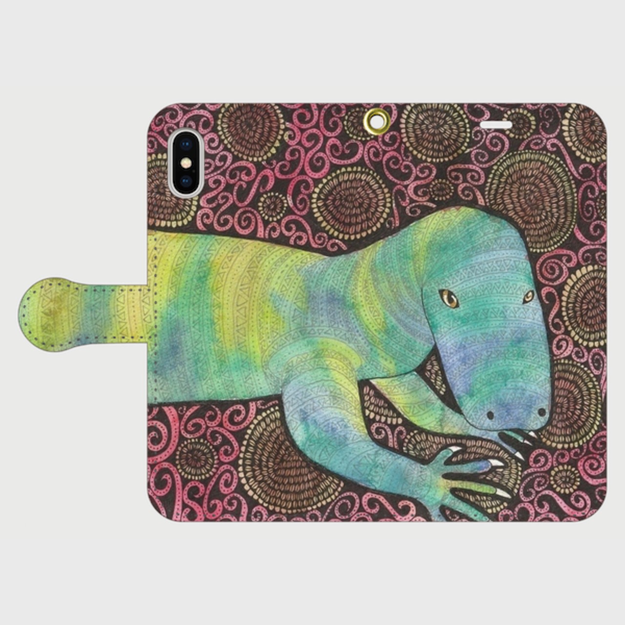 手帳型iPhoneケース/スマホケース/ハナブトオオトカゲ
